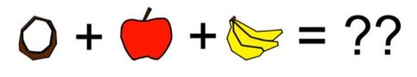Some think that if a pair of half coconuts is two, a single half coconut must be one. Similarly, they believe that if a bunch of four bananas is worth four, a bunch of three must be three, making the final answer 14.